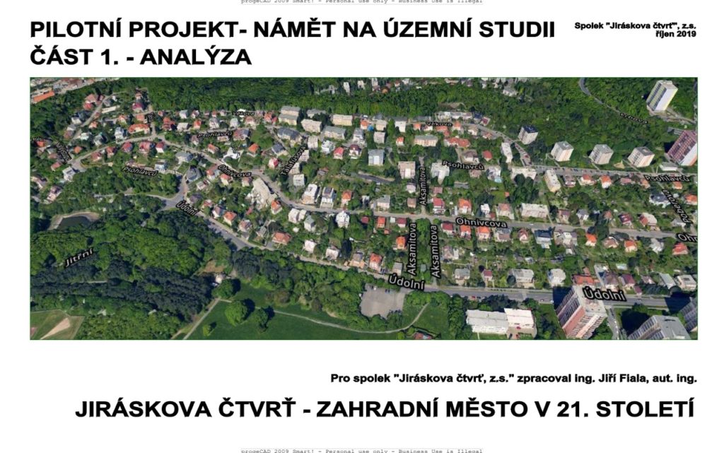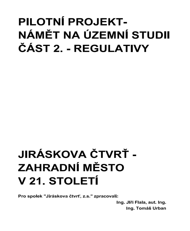 Za zásadní dokument, který by měl definovat stavební vývoj a dotvoření Jiráskovy čtvrti, považujeme územní studii. Přítomné jsme proto seznámili s námětem na její zpracování. Označujeme jej jako pilotní projekt, protože upřesnit stabilizovaná území územní studií zatím nikoho nenapadlo.